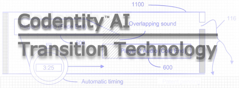 Codentity AI Transition Technology (AITT) gives the listener consistently normal audio sound level mixing and precision file play start and end timing...