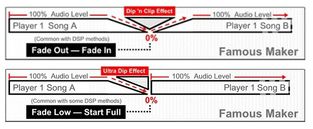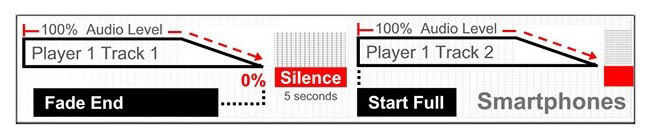 That is an explicitly unnatural way of delivering a music mix. Codentity AI Transaction Technology does not rely on the often poorly implemented cross-fades heard in many competing technologies.