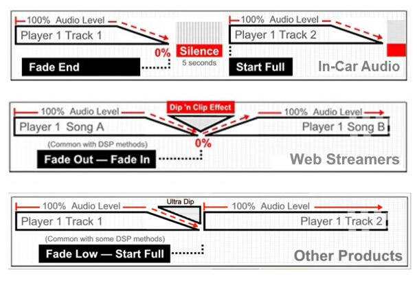 These DSP processes require CPU overhead and can create transition pairings with imprecise song boundaries and undesirable audio levels.